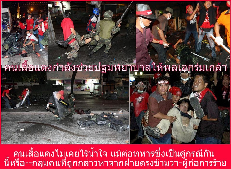 กุหลาบ ปากซัน เสื้อแดงนี่ใจร้ายจริงๆครับ ขนาด พ.อ.ร่มเกล้า เจ็บขนาดนี้ยังเข้าไปช่วยประถมพยาบาลอีก